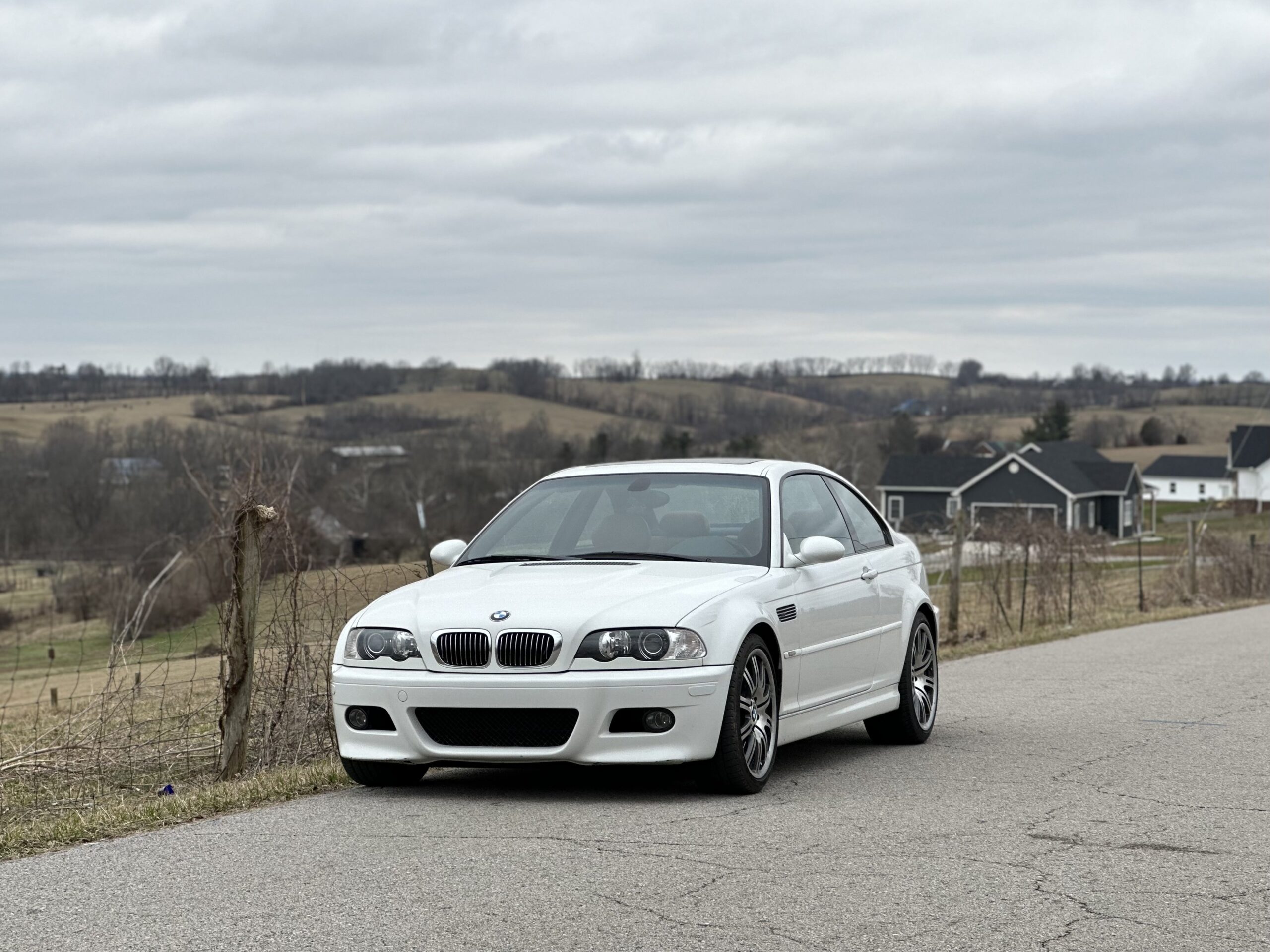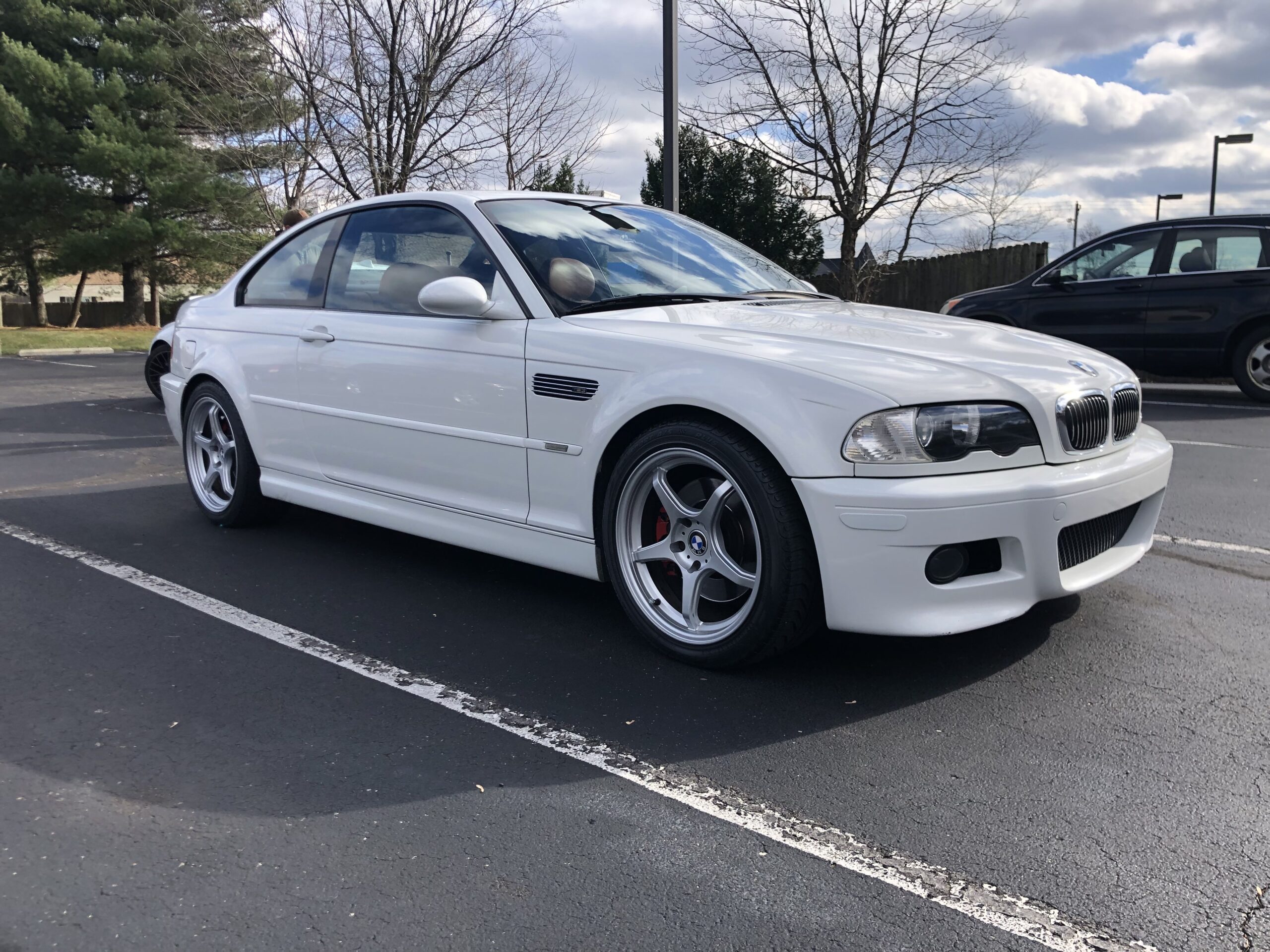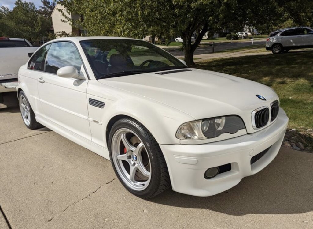 This is the story of my Alpine White on Cinnamon 2002 E46 m3. It began in November 2022, having just sold my E92 M3 ZCP. At the time I was on the hunt for either an F80 M3 or an E46 M3, and an E46 seemed like a more realistic choice as F80 prices were still very high thanks to the crazy market that covid had created. One night, my friend Ashlin sent (spammed) me a Facebook marketplace ad for what looked like the PERFECT spec E46 M3. It was a 2002 Alpine White on Cinnamon coupe, with 88k miles and longterm second ownership. I know I’m in the minority, but I was happy to see it was an SMG since I think it is a very fun transmission when set up properly. It was listed for $18,000, so I quickly messaged the seller to make plans to see it. The CarFax report came back clean and showed regular maintenance at the same BMW dealership in Cincinnati for nearly 20 straight years.